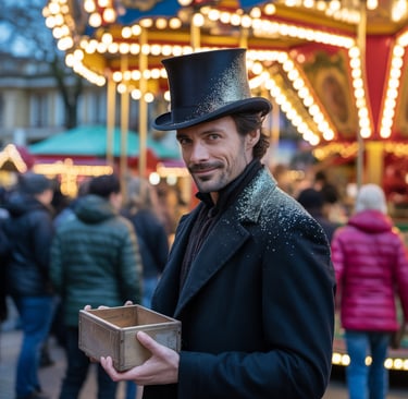 Als er in die leere Kiste blickte, wusste er: Sie war nicht leer. Sie enthielt die Erlaubnis, wieder Freude an einem Ort zu empfinden, der ihm fremd geworden war. Und im Morgengrauen fand er in seiner Manteltasche einen einzelnen, winzigen Partikel des silbrigen Staubes. Ein Gruß vom Hut des Unbekannten, eine Erinnerung an die Magie, die manchmal selbst auf den überfülltesten Weihnachtsmärkten zu finden ist.